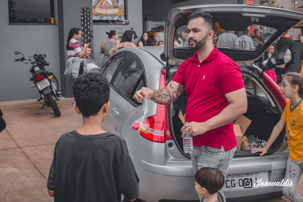 contamos com a presença de mais de 150 crianças e um total de mais ou menos 100 pais.