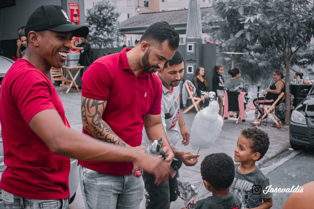 As crianças que estiveram presentes receberam kits de chocolate, algodão doce e puderam se divertir bastante com o pula-pula/cama elástica